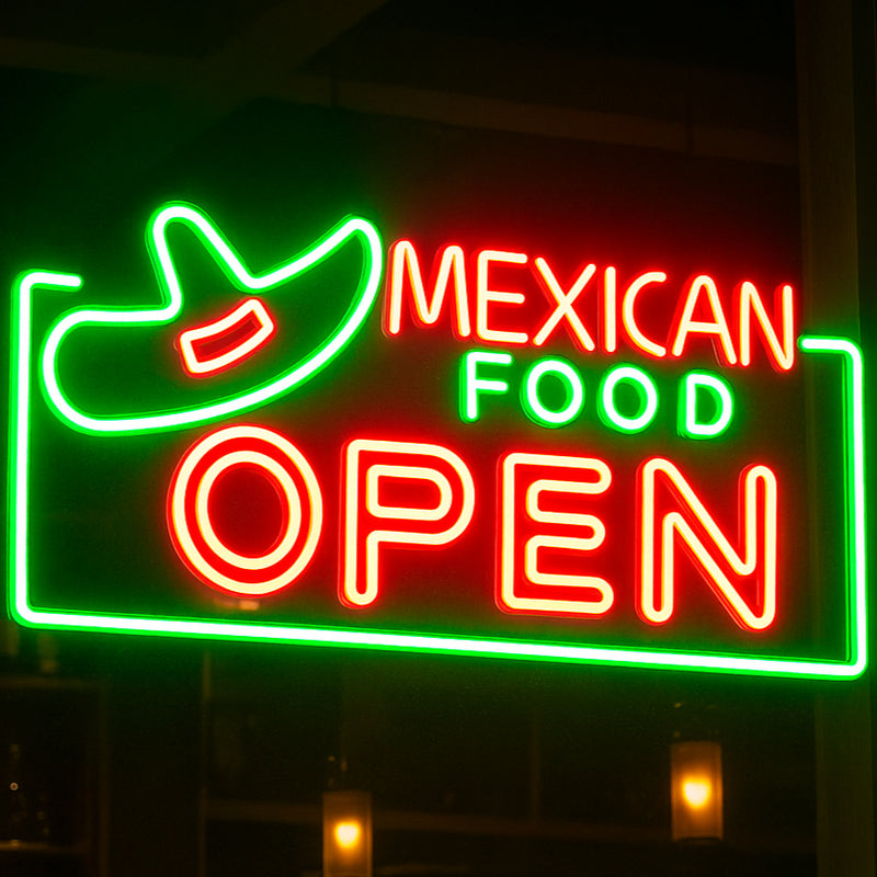 Our Oversized 32" × 24" Multicolor LED Light Sign Includes Remote Control (20 Static Colors and 19 Dynamic Modes). 20–30 Feet Window Visibility; See Our Ultra-Bright Signs for Greater Distances.